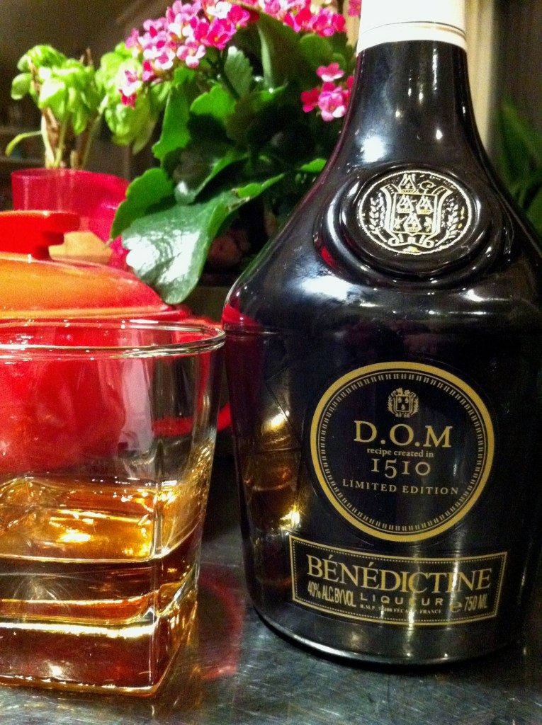 I wanted to make a cocktail with Benedictine. I didn’t want to make the popular “B & B”. It comes in its own bottle and is the main way it is sold nowadays.
