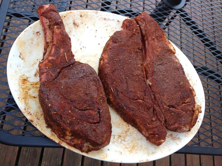 It’s not the easiest thing to find, but it sure is worth it.  When they’re available, I stock up and always have a nice supply of rib-eyes vacuum packed in the freezer.  I order them cut bone in and about 1 1/2 inch thick.  They end up around 18 to 24 oz.  Big ass steaks.