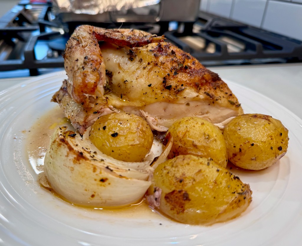 Those two steps result in a perfectly juicy chicken and crisp potatoes. I will never make it another way now.