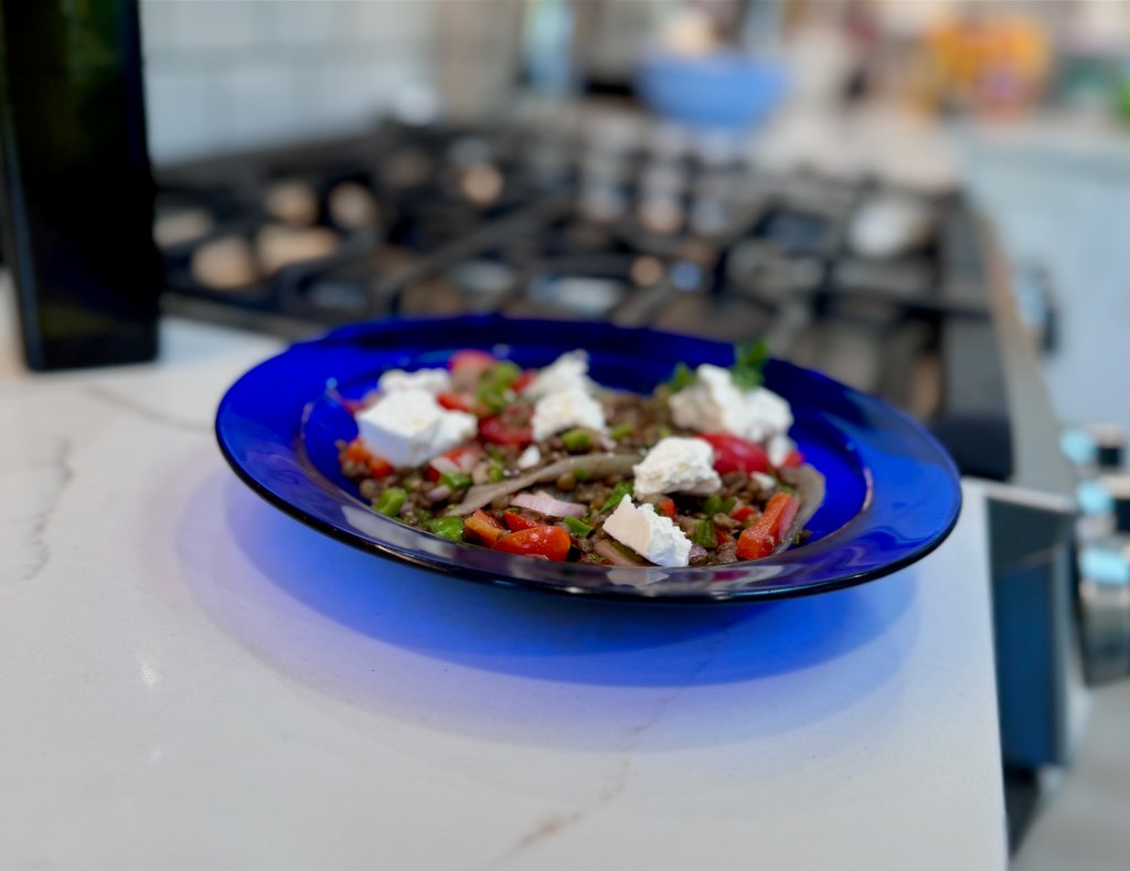 Lentils are a staple food in Greece and have eaten them all my life. My mom would make lentil soup about twice a month. It’s summer, so I made a salad!